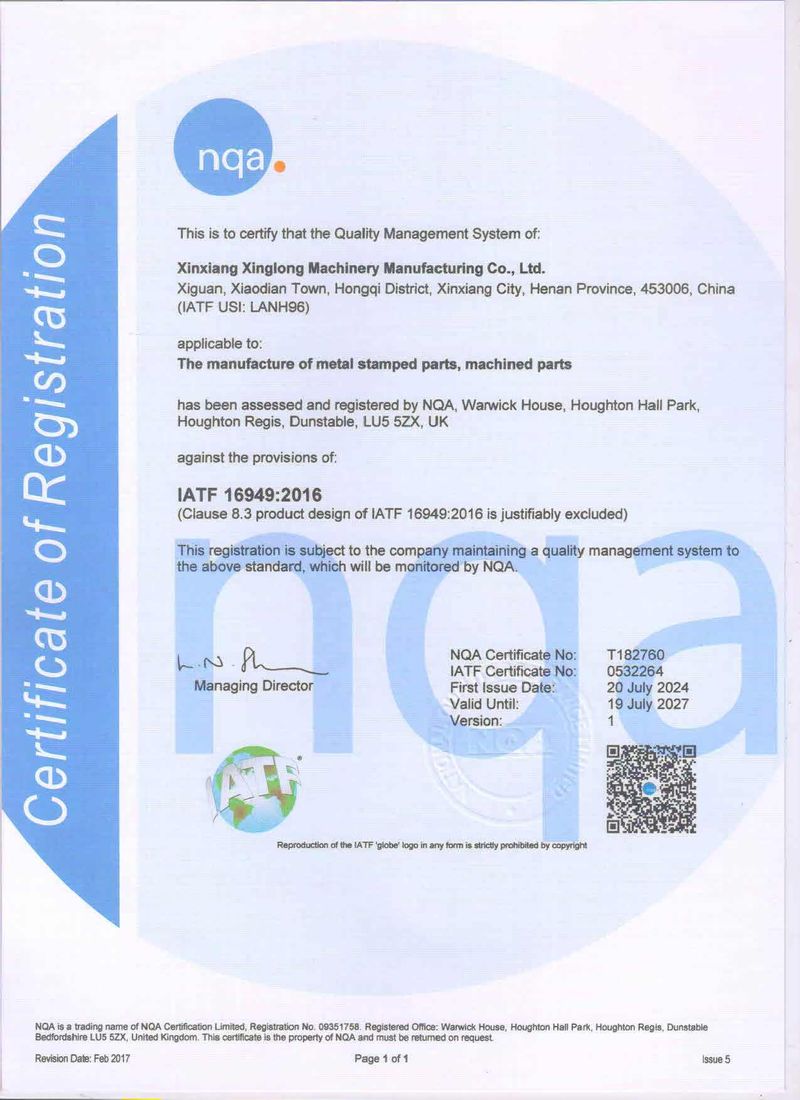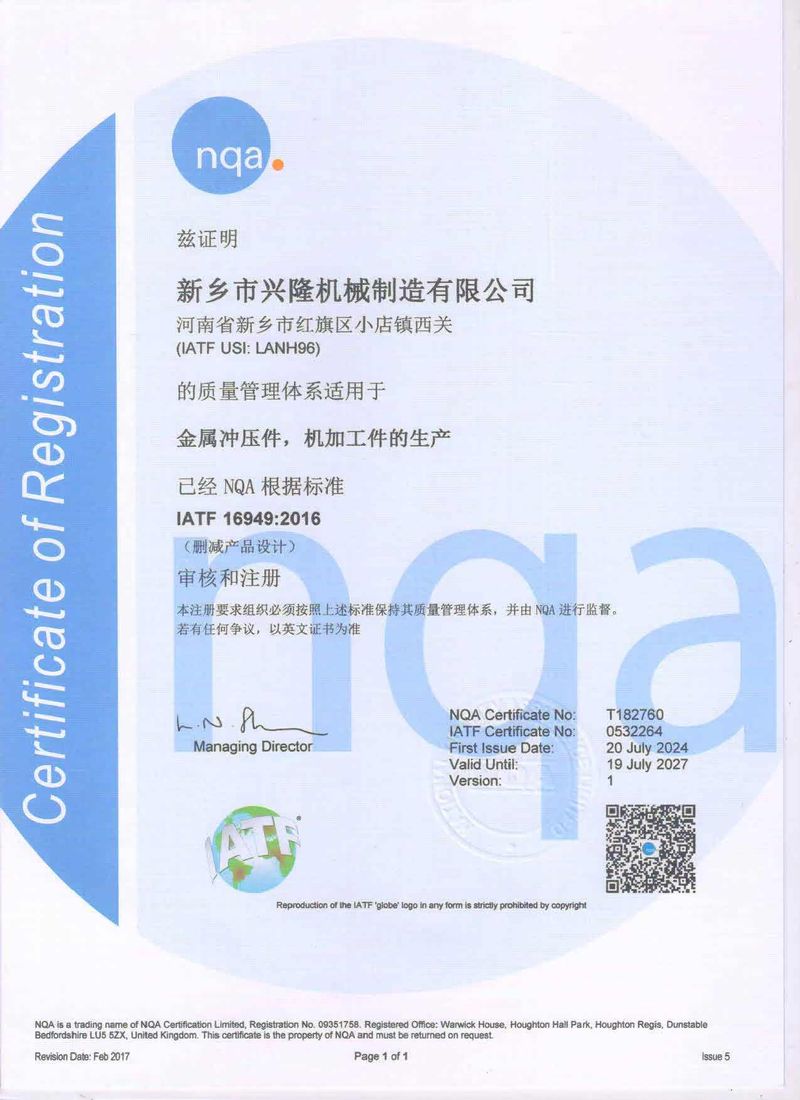 公司簡介新鄉(xiāng)市興隆機械制造有限公司成立于2004年,是一家專門生產(chǎn)濾清器配件、電池配件、冰箱配件等金屬沖壓件的機加工企業(yè)。公司位于新鄉(xiāng)市紅旗區(qū)小店鎮(zhèn),緊鄰京珠高速、107國道,占地23000m2,于2004年通過了質(zhì)量管理體系認(rèn)證。